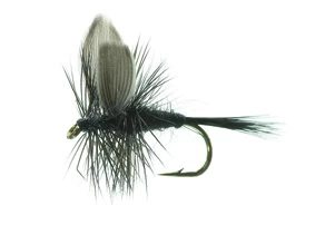 Schwarzmücke Schwarz TMC 100 #12. Klassische Fliege für Forellen und Äschen in Skandinavien.