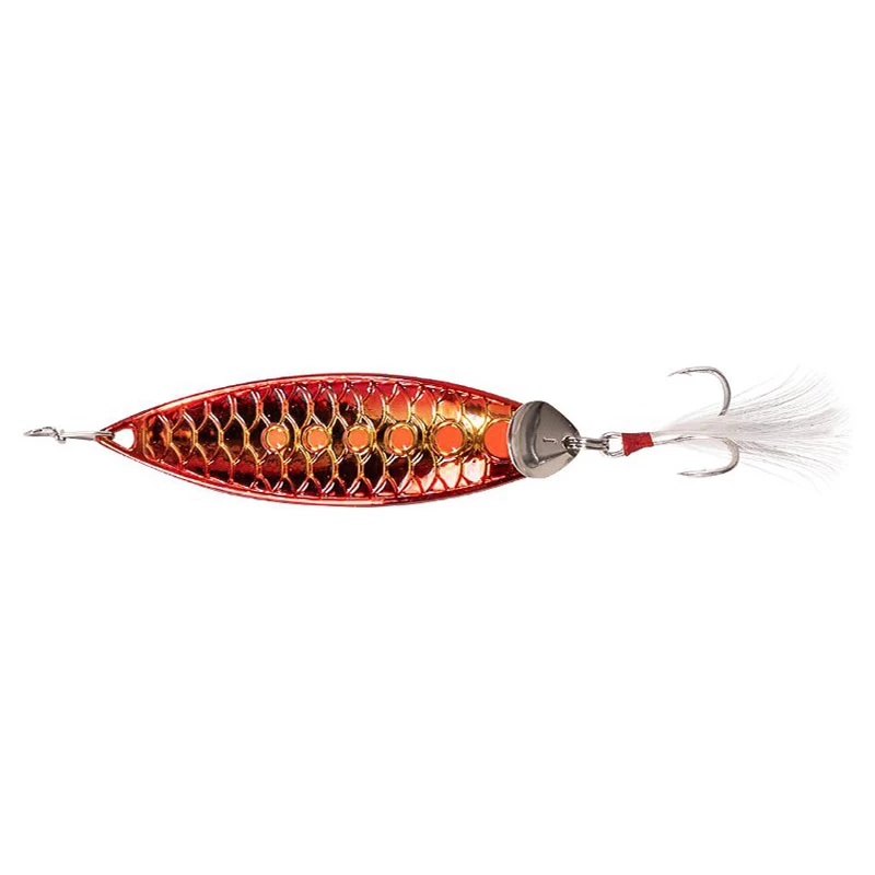 Die Metalllegierung und die fischähnliche Form sorgen für extra lange Würfe. Ein effektiver Köder, der in verschiedenen Größen erhältlich ist, auf Barsch, Hecht, Lachs, Forelle, Regenbogenforelle und viele mehr!