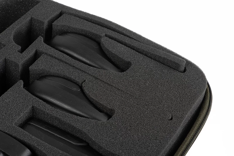 Tarnfarbenes EVA-geformtes RX+ EtuiFür die perfekte Aufbewahrung von bis zu 4 RX+ Alarmen und EmpfängernEinzigartiges Fox Camo MusterBietet auch Platz für die entsprechenden Black Label QR-Aufsätze und Snag EarsPlatz für Kleiderbügel, Batterien, Werkzeuge oder andere nützliche Dinge2 Reißverschluss-Netztaschen im Deckel zur Aufbewahrung von Fox Swingers500D Polyester mit PVC-BeschichtungÄußeres – 100% PolyesterFüllung – 100% PolyethylenAbmessungen: 31 x 13 x 38 cm