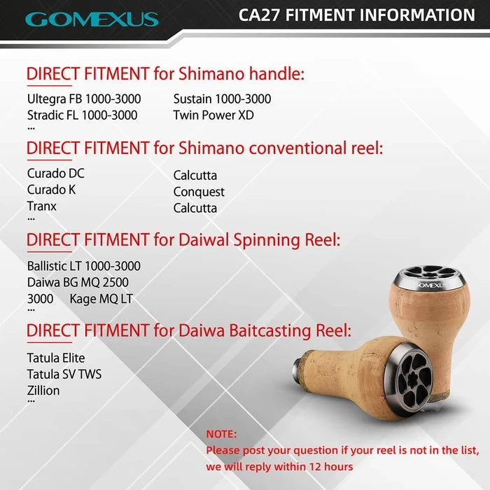 Classic round shape knob, make it more comfortable to grip and there’s a larger area to force. Made by softwood which is not cold in winter and not hot in summer. Matched with Japanese stainless steel bearings, it gives you a light and strong experience while having unparalleled smoothness, fishing in freshwater, inshore to saltwater redfish, snook, trout, bass, grouper, catfish, and other fish species will have a different experience.Compatible reels:ShimanoStradic FK, Stradic Ci4 Stradic FL, Vanford, Ultegra, Twin Power XD 1000 – 5000Daiwa:Ballistic LT, Certate/ Certate LT, Tatula LT, Fuego LT, Kage LT, Luvias/ Luvias LT, Regal LT, BG MQ 1000 – 5000Direct fit for Shimano Daiwa Baitcasting: Shimano Curado SLX Citica; Daiwa Fuego Tatula CoastalLight Weight: Only 0.35oz/10gKnob Diameter: 27mmKnobMaterial: CorkPackage included: One piece knob, bearings, and washers