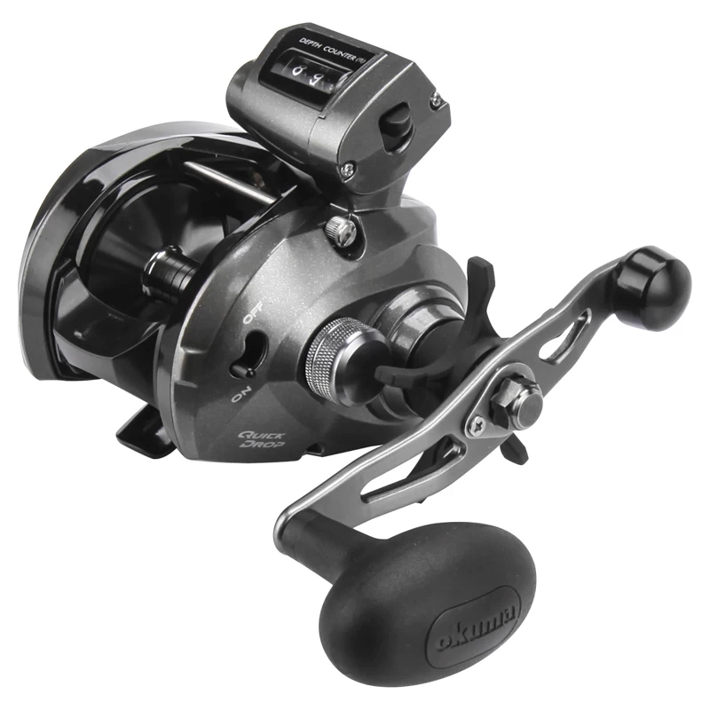Flachbauende Schnurzähler-Schlepprolle mit cleverer Quick Drop Switch-Funktion. Wenn der Schalter eingeschaltet ist, drücken Sie die Daumenleiste, um die Spule freizugeben. Lassen Sie den Druck auf den Daumenbügel, und die Spule ist wieder eingerastet. Einfach genial.Leichtes Gehäuse und Seitenplatten aus GraphitFlaches Design2BB + 1 RB-Edelstahl-LagerQuick-Set Anti-Rücklauf-RollenlagerMechanischer Schnurzähler in FußMaschinengeschnittene AluminiumspuleAluminium-Griff mit TPE-Ergo-GriffknopfMicro-Klick-Sternbremse für präzise EinstellungHaupt- und Ritzelgetriebe aus MessingMehrscheiben-Carbonit-BremssystemDoppeltes Anti-Rücklaufsystem für maximale ZuverlässigkeitSynchronisierte XL-Levelwinde, optimiert für geflochtene SchnurEin/Aus-Köderklicker für Trolling, Chunking oder KöderfischenEinfacher Zugang zur SpuleQuick Drop Schalter Ein/AusOkuma Convector Linecounter CV 163DLX LHLager: 2+1Gewicht: 224 gGetriebeübersetzung: 6.3:1Leitungskapazität: 160 m/0,31 mmLeine pro Kurbel: 68 cmMax. Widerstand: 5 kgOkuma Convector Linecounter CV 354DLX LHLager: 2+1Gewicht: 335 gGetriebeübersetzung: 5.4:1Linienkapazität: 240 m/0,33 mmLinie pro Kurbel: 65 cmMax. Widerstand: 10 kg