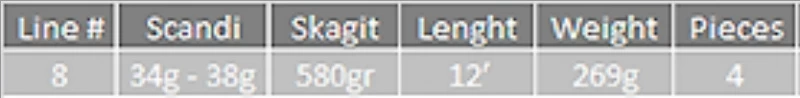 Dies ist keine weiche & schwere Glasrute der alten Schule, sondern ein modernes Lachswerkzeug mit einer deeeeeeep bend.• Full flex• Vier Stück• Verchromte Schlangenführungen aus Edelstahl & Abstreifführungen• Korkgriff• Olivgrüner Aluminium-Rollensitz mit Glasfasereinsatz• Glasfaserstabrohr• StoffbeutelLinie Länge Gramm/Körner Gewicht Stück #8 12´ 34-38g / Skagit 580gr 269g 4